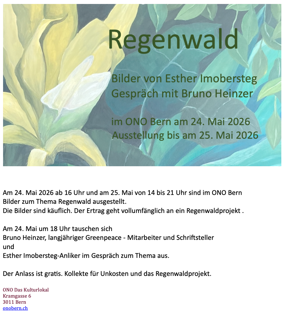 die bilder der ausstellung regenwald im ono bern werden ab ende mai aufgeschaltet.